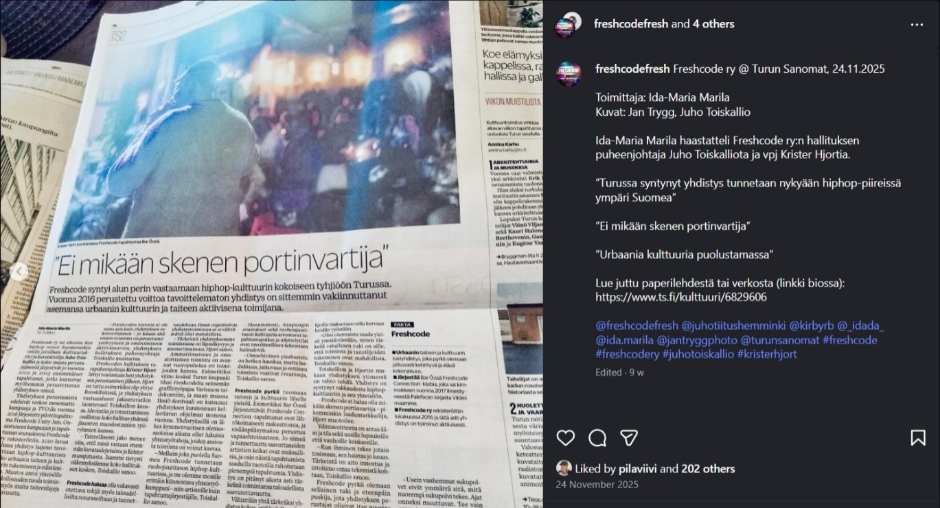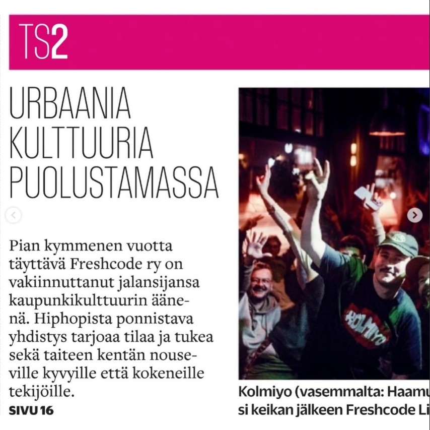 Linkki yhdistyksen sivuille: Freshcode.fi | Urbaanin taiteen ja kulttuurin tukiyhdistys