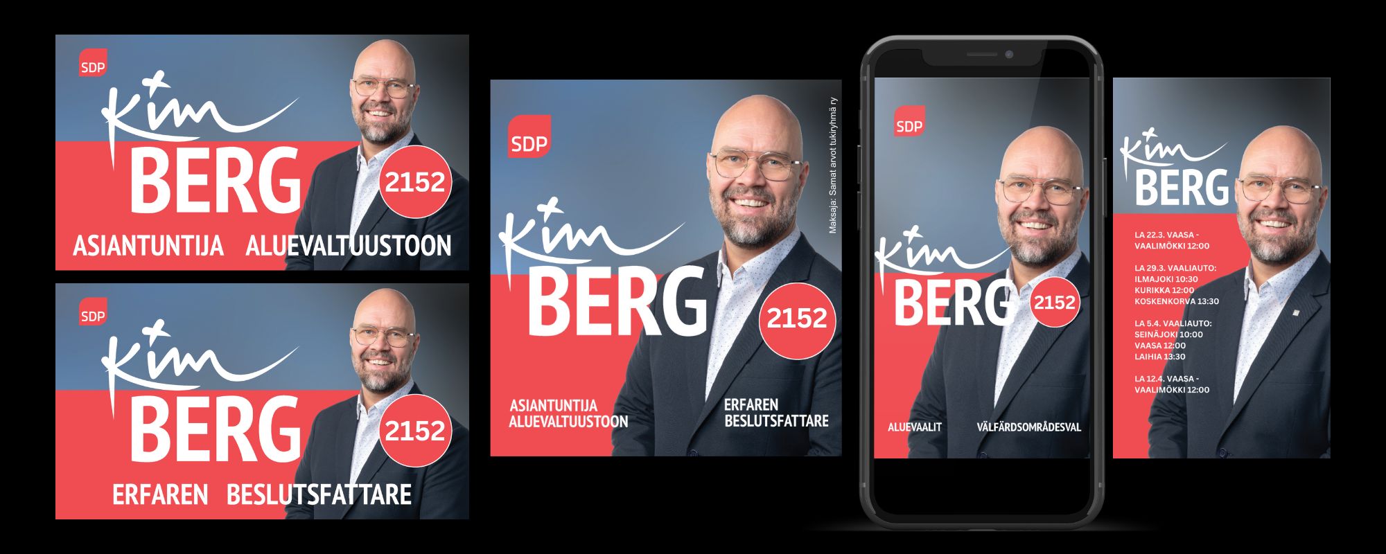 Keväällä 2025 suunnittelin ja toteutin aluevaalikampanjan visuaaliset materiaalit Sosiaalidemokraatti puolueen ehdokkaalle. Tavoitteena oli jatkaa jo olemassa olevaa henkilöbrändiä ja luoda yhtenäinen visuaalinen kokonaisuus, joka tukee ehdokkaan arvoja, uskottavuutta ja helposti lähestyttävää viestintätapaa. Työ sisälsi sekä digitaalisia että painettuja kampanjamateriaaleja niin ulkomainonnasta sosiaalisen median sisältöihin.