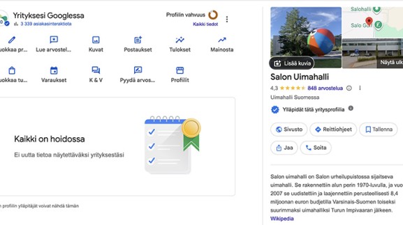 Infonäytön sekä Google yritysprofiilien päivittämistä